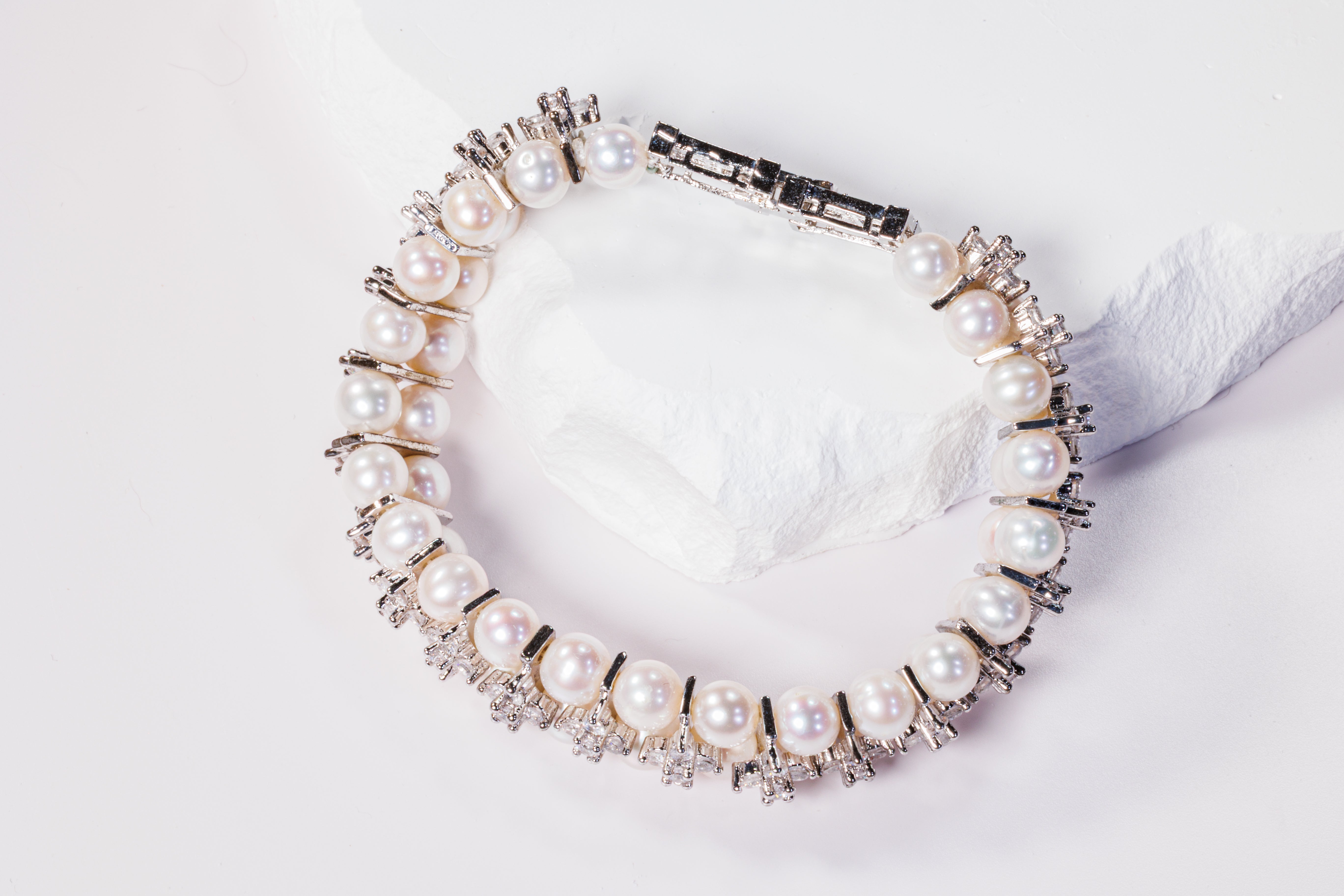 Designed as the perfect companion to the statement necklace, this pearl and zircon bracelet captures the same balance of softness and sparkle in a more delicate form. The alternating pearls and zircon accents create a refined shimmer that catches the light with every movement.